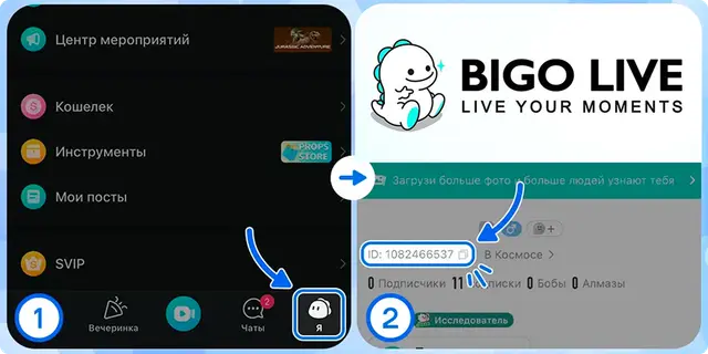 Затем введите ID от вашего аккаунта Bigo Введите ID